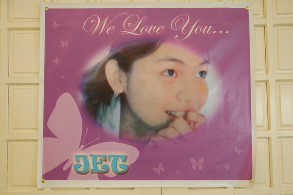 LIFE SEEMS TOO SHORT FOR JET FOR HER JOURNEY IN LIFE IS UNFINISHED. PRECIOUS MEMORIES FLASHED BACK TO MY MIND AS IF WATCHING RECORDED VIDEOS IN THE PAST... JET CAME INTO THIS WORLD IN NOV. 18, 1989 AS THE THIRD AND THE YOUNGEST CHILD IN THE FAMILY. JET AS WE CALL HER IS A SWEET, LOVING, CARING, HARD WORKING AND GOD FEARING CHILD. SHE GREW UP VERY DEPENDENT AND FRIENDLY. SHE LOVE TO DANCE, SING AND ACT, NO DULL MOMENT WITH HER. SHE IS SIMPLE BUT CHARMING...PEOPLE ARE ATTRACTED BY HER MAGNETIC SMILE AS ONE OF HER GREATEST ASSET. AS A DAUGHTER, JET IS ALMOST PERFECT THAT SHE IS LIKE A PRECIOUS GEM THAT ONE WOULD TREASURE HER. TO ME AS HER MOTHER SHE IS AN ANGEL I FONDLY CALL HER ANGEL BABY AND SHE IS TRULY AN ANGEL FOR SO MANY REASONS. THOUGH AM THOUSAND MILES AWAY FROM HOME, WE SEE TO IT THAT WE CHAT AND SEE EACH OTHER ALMOST EVERYDAY THROUGH THE INTERNET. WE TALK ABOUT SO MANY THINGS, WE PRAY AND SAY THE ROSARY TOGETHER, WE SING, LAUGH AND CRY, WE EXCHANGE IDEAS REGARDING HER SCHOOL ASSIGNMENTS, MOVIES AND DRAMAS WE WATCH, I KEEP HER COMPANY WHEN LEFT ALONE IN THE HOUSE, AND EVEN HELP HER WATCH FOR MY GRANDSON SEAN VIA CAM. BEFORE WE PART FOR THE DAY WE ALWAYS SAY... I LOVE YOU....I CARE FOR YOU ... I MISS YOU SO MUCH... WE HAVE LOTS OF FOND MEMORIES AND A DAY OR TWO IS NOT ENOUGH....